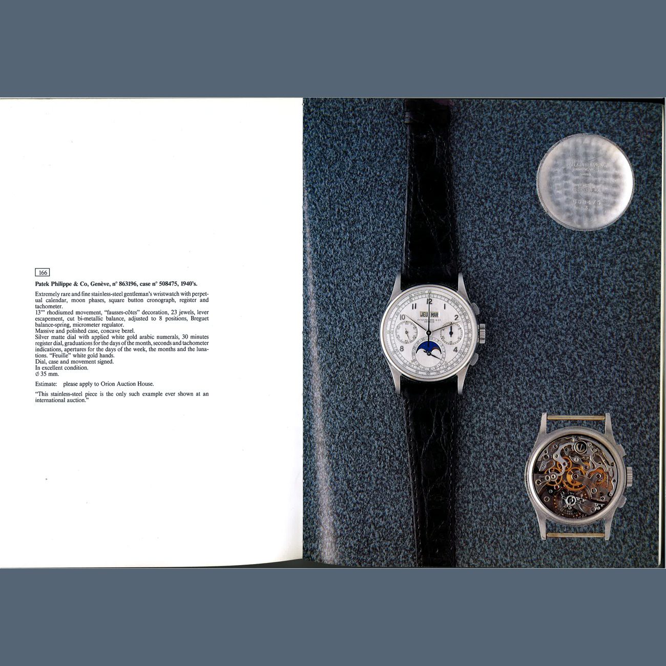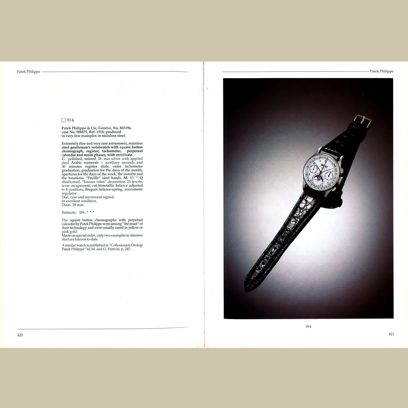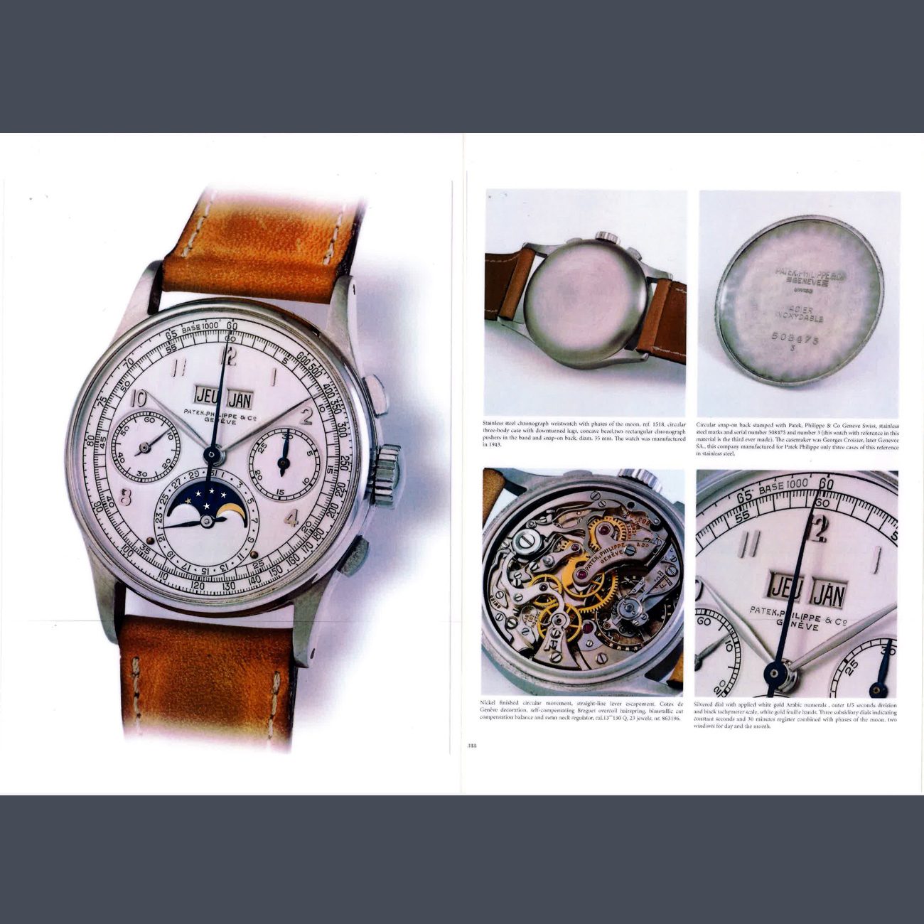 In October 1995, the watch appeared once again at Antiquorum’s “Important Watches, Wristwatches and Clocks” sale in Geneva, under the direction of Osvaldo Patrizzi. Featured on the back cover of the catalogue alongside some of the most important Patek Philippe wristwatches, two of which were later acquired by the Patek Philippe Museum, this 1518 was already a watch of legendary status.